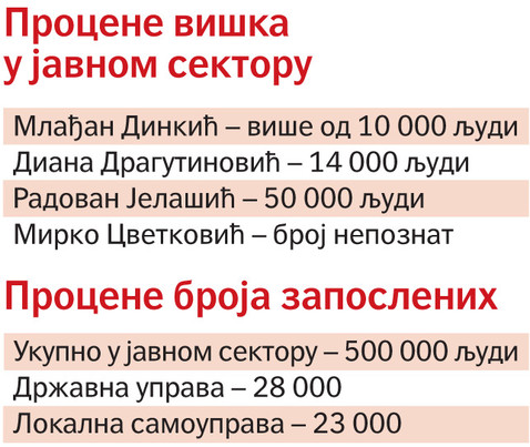 Koliko će biti otpušteno ljudi iz klasične administracije, a koliko iz zdravstva u ovom trenutku valjda niko i ne zna. Utoliko pre što ministar zdravlja tvrdi da viška kod njega nema i da bi jedino na udaru mogli biti oni na ugovoru.