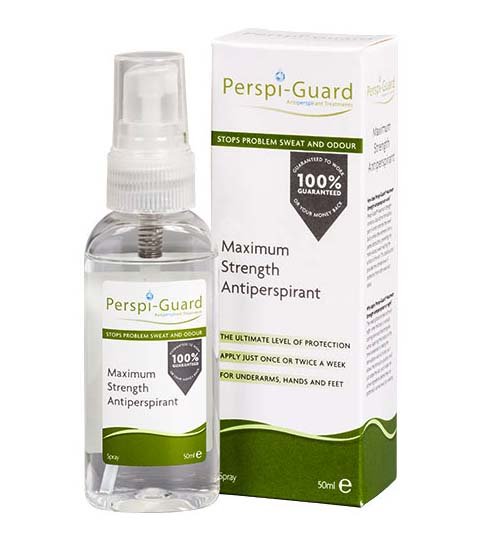 Antipespirant Perspi-Guard® sprej protiv pojačanog znojenja osigurava 5-dnevnu potpunu zaštitu od znojenja i pratećeg neprijatnog mirisa. Perspi-Guard sprej pruža potpunu zaštitu, prijatan osećaj, a time i samopouzdanje. Deeluje na više mesta na telu, kao što su pazuh, stopala, dlanovi i prsa/leđa.