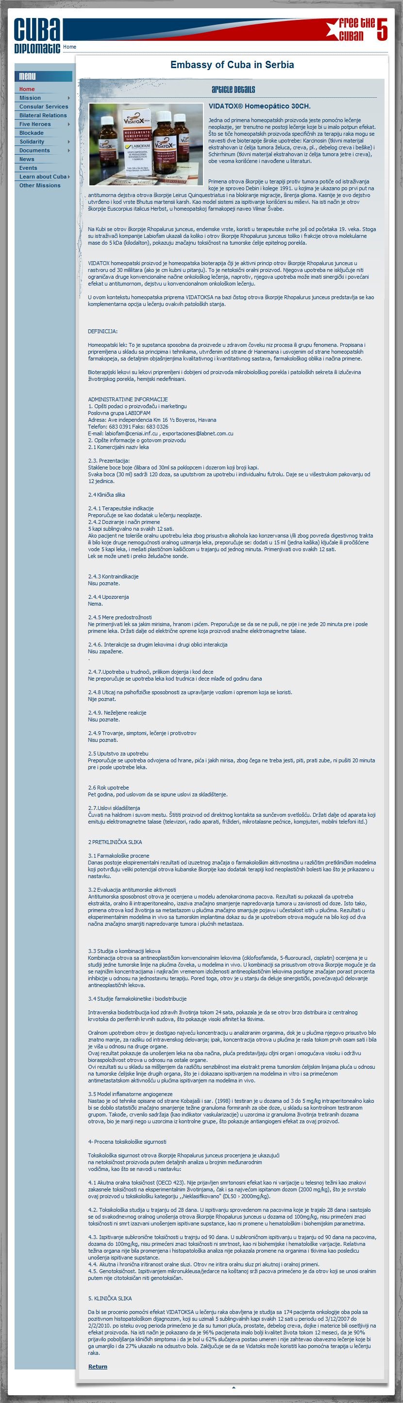 Dodatne informacije sa sajta Kubanske ambasade u Srbiji (vidatox 30CH) kliknite na prikazanu sliku.